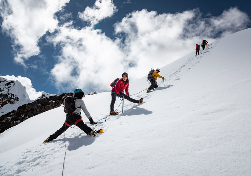 - Equipo técnico básico (crampones, piolet, casco y arnés)
